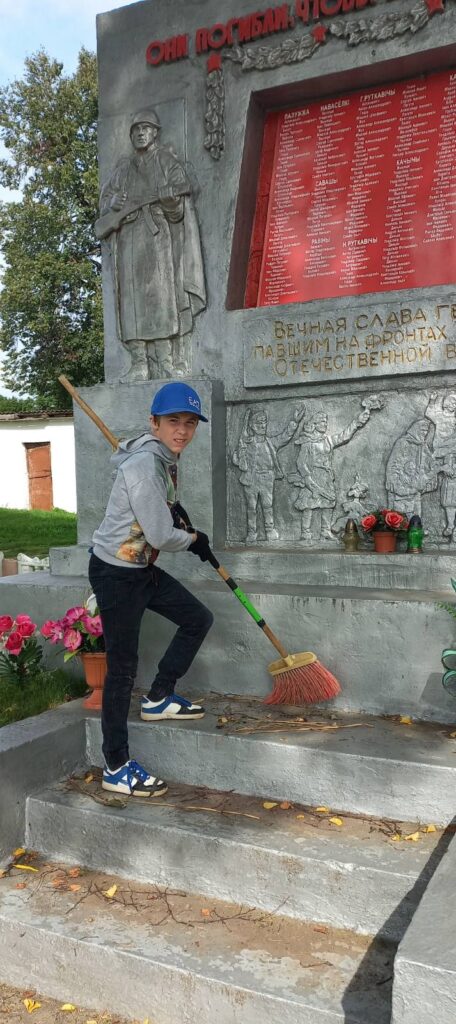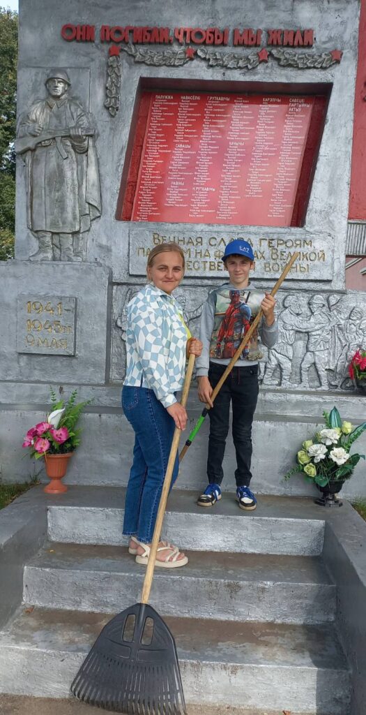 Сотрудники и воспитанник СПЦ провели уборку на территории памятника погибшим воинам в аг. Полужье. Благоустройство памятника — это дань памяти перед поколением, прошедшим войну, перед их мужеством и стойкостью. Это та малая часть наших дел, с помощью которых мы выражаем благодарность всем тем, кто отдал свою жизнь ради нашего мирного неба.
