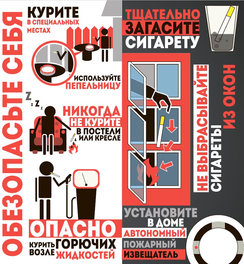 СПАСАТЕЛИ НАПОМИНАЮТ: – не курите в квартире (доме), тем более в постели, особенно в состоянии алкогольного опьянения; – не используйте в качестве пепельницы бумажные кульки, коробки от спичек или сигарет – они могут воспламениться; – не бросайте даже потушенные сигареты в мусорные ведра, с балконов и лоджий; – следите, чтобы пепел не попал на горючие вещи или пол; – будьте предельно осторожны при использовании открытого огня; – установите автономные пожарные извещатели, способные на ранней стадии предупредить беду. Установите в доме автономные пожарные извещатели. Эти простые, но эффективные приборы могут спасти жизни. Помните: ваша ответственность и внимание – лучший способ предотвратить беду!